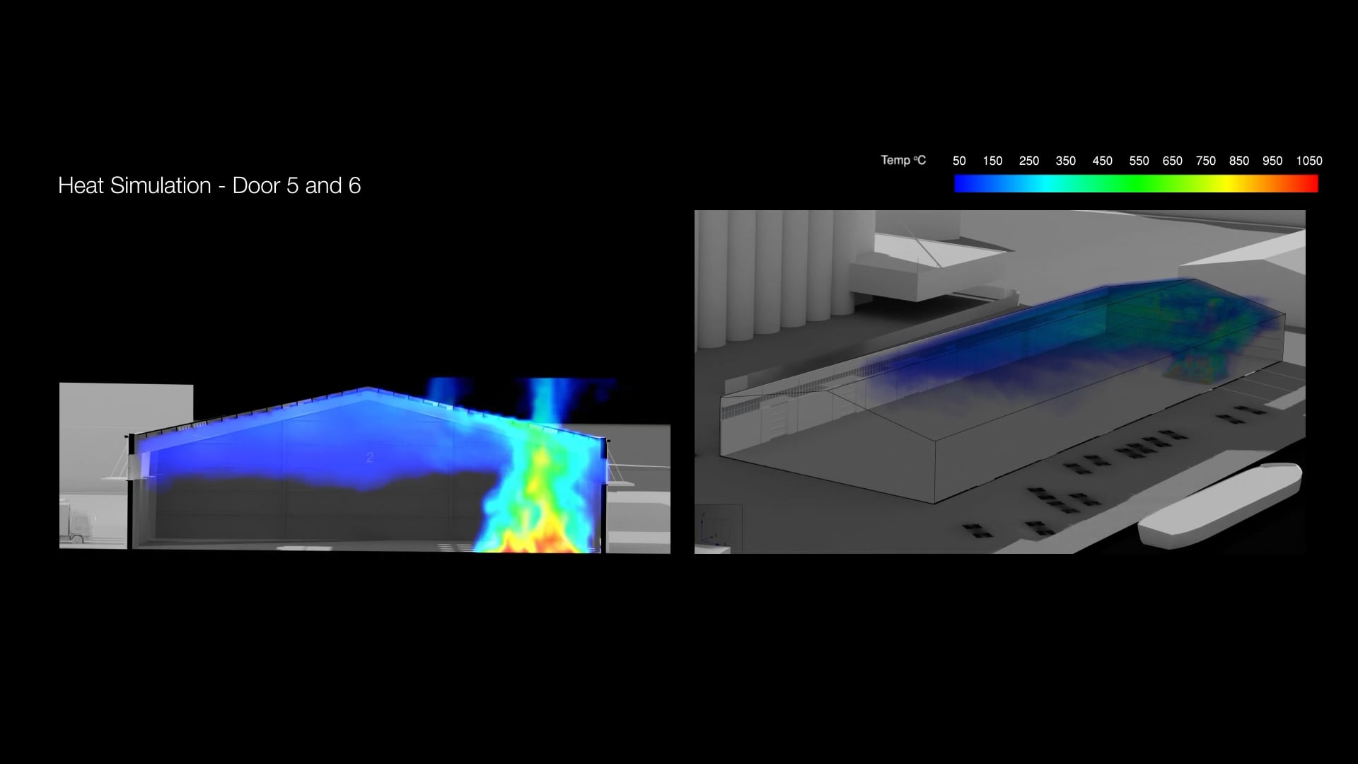 We worked with engineers at Kindling Safety, a non-profit dedicated to fire safety, to determine if the zone behind doors 5 and 6 could have been the region of the fire’s origin. Kindling developed a series of fire dynamics simulations to test this possibility. The results of these simulations correspond with our visual analysis of the videos shot around the warehouse.