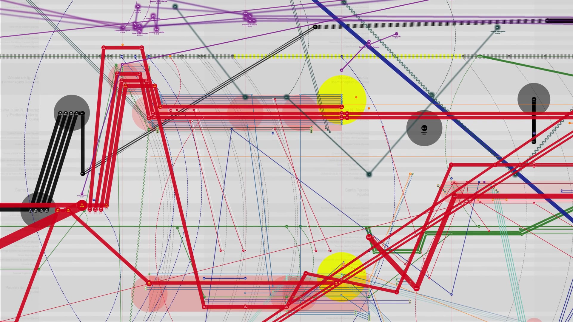 Our investigation into the disappearance of the students from Ayotzinapa is now part of the permanent collection at the University Museum of Contemporary Arts (MUAC), at Mexico’s National Autonomous University in Mexico City. Central to that exhibition is a graphic mural composed from the data drawn by our researchers from the pages of the GIEI and PGR reports, and the research of journalist John Gibler.