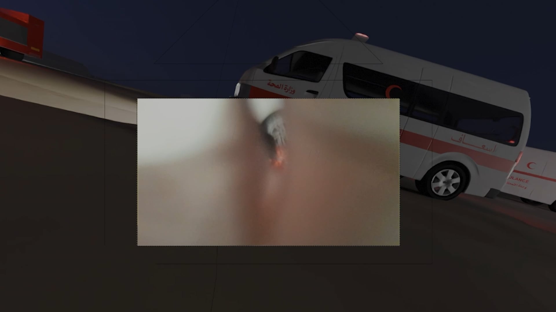 PRCS volunteer Munther Abed is the sole survivor from the original missing ambulance, and PRCS paramedic Asaad al-Nassasra is the sole survivor from the rescue convoy sent to find it. Using our 3D model of the attack site, we conducted virtual ‘situated testimony’ interviews with Munther and Asaad, facilitated by PRCS.